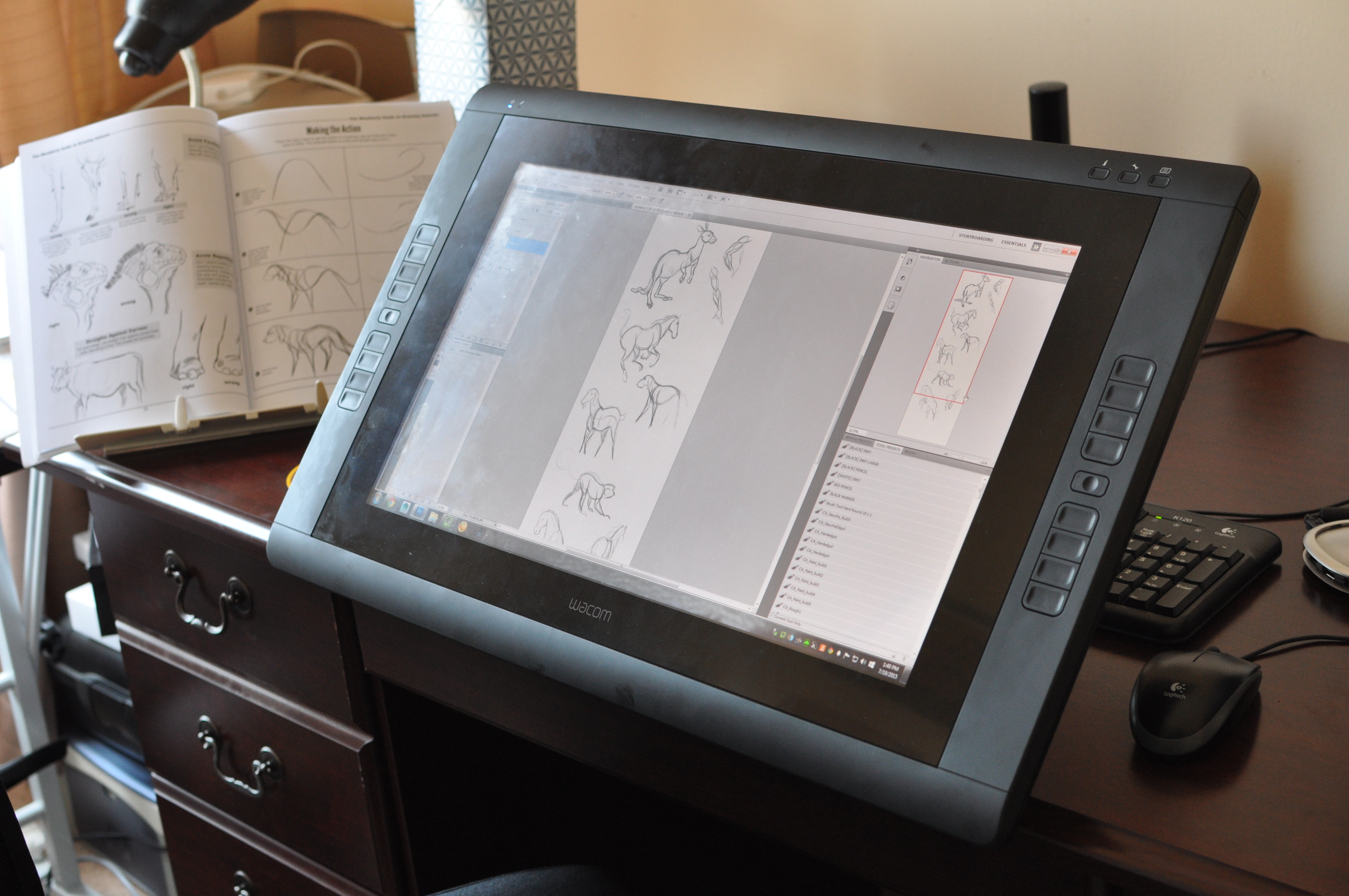 Second off: My workspace got a major upgrade! After wanting one for years and years, I finally bit the bullet and bought a Cintiq. And OH MY GOD I LOVE IT SO MUCH. So. Much. I lurked on eBay for a couple of weeks to see what the going prices were and as soon as I saw a barely used 22HD go up for half retail price, I knew I had to grab it. AND BONUS it’s a 22HD Touch, which the seller didn’t even tell me!